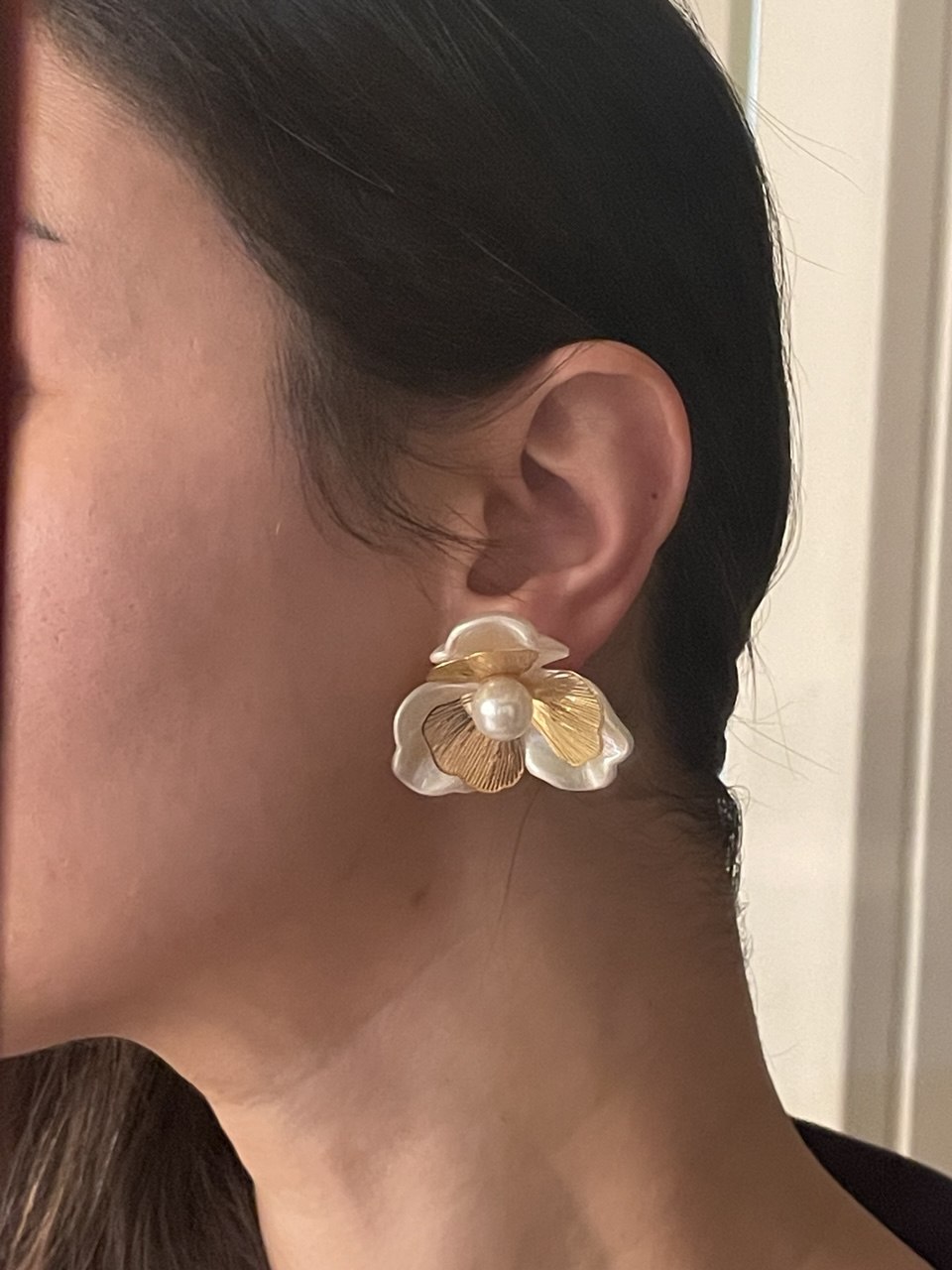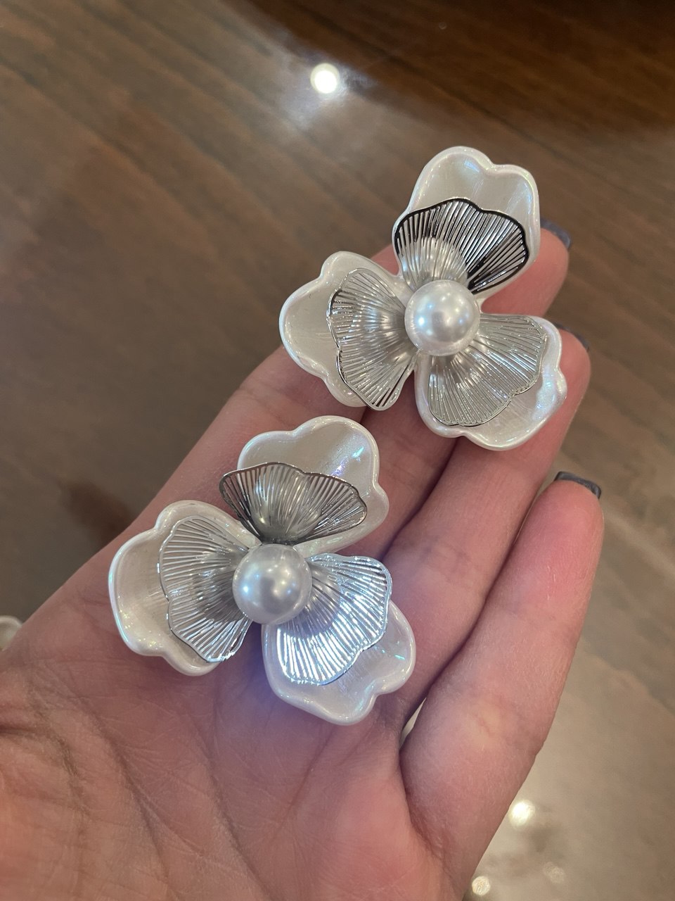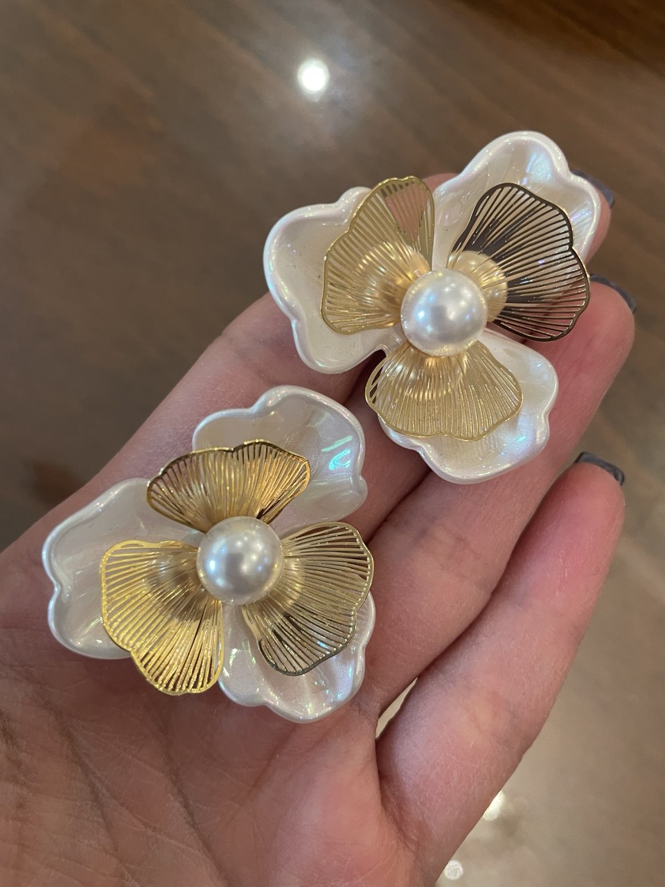 گوشواره گل صدفی طلایی نقره ای