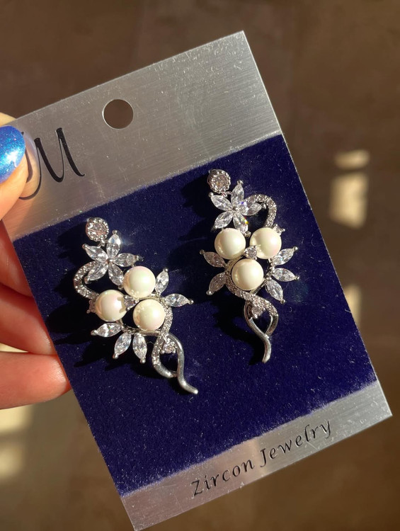 گوشواره جواهری مرواریدی نگین اتریشی مخراج کاری