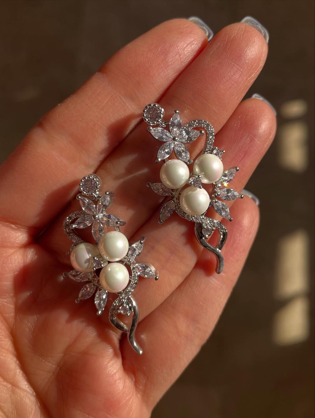 گوشواره جواهری مرواریدی نگین اتریشی مخراج کاری