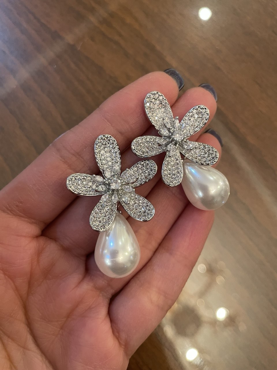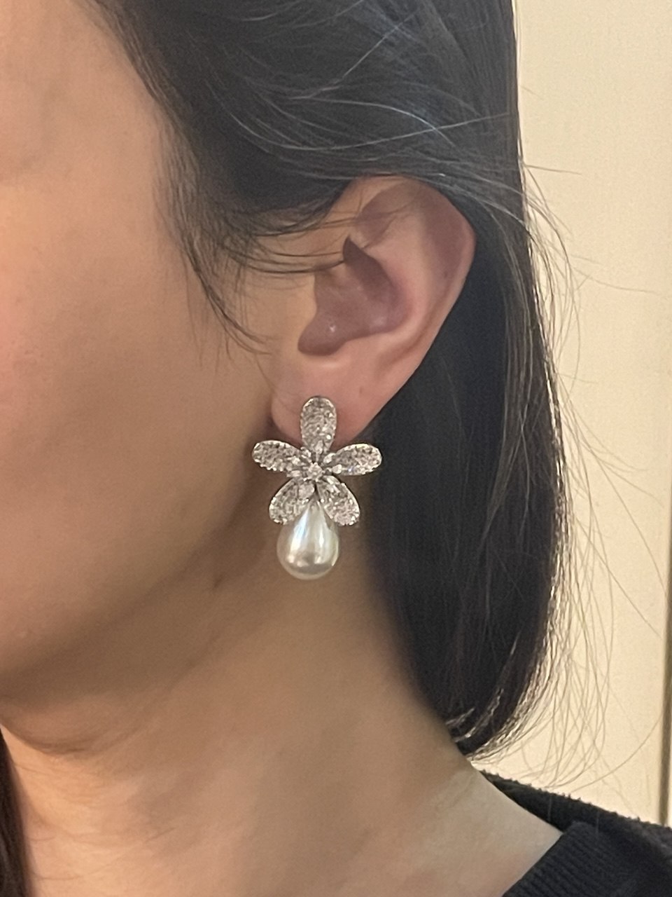 گوشواره جواهری نگین اتریشی مرواریدی