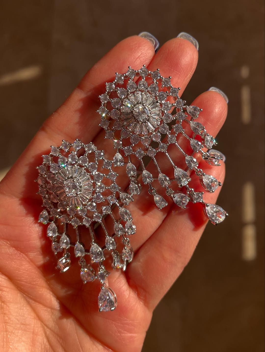 گوشواره جواهری نگین اتریشی مخراج کاری