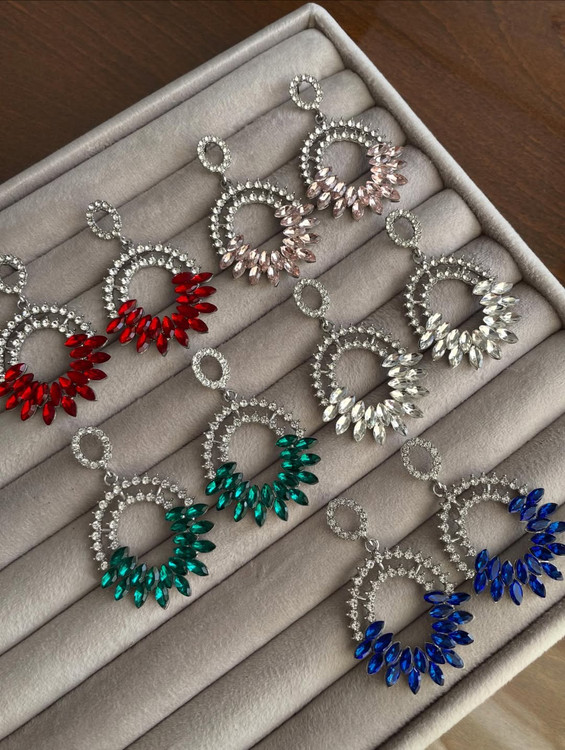 گوشواره نگیندار مجلسی رنگی قرمز سبز صورتی سفید سرمه ای