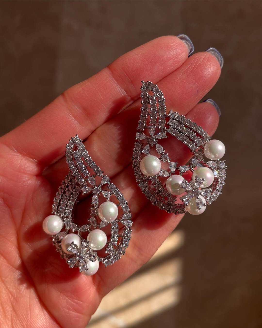 گوشواره جواهری مرواریدی نگین اتریشی مخراج کاری