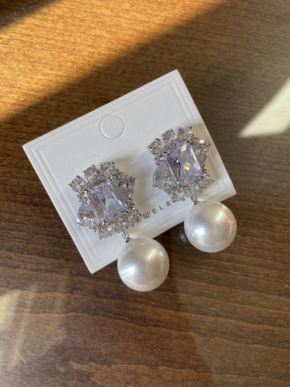 گوشواره مرواریدی نگین اتریشی مخراج کاری