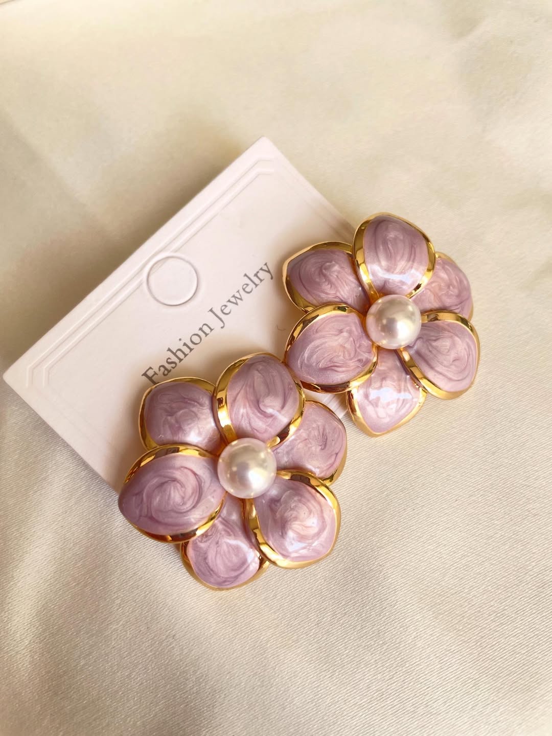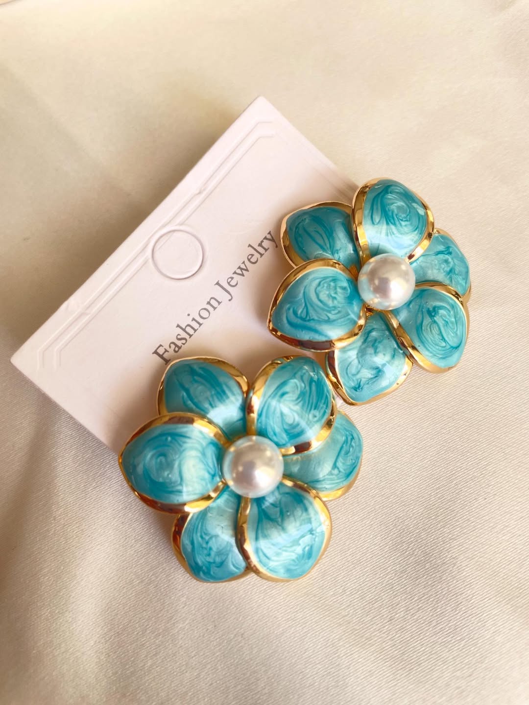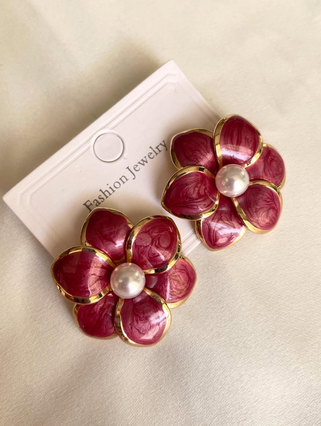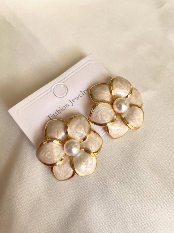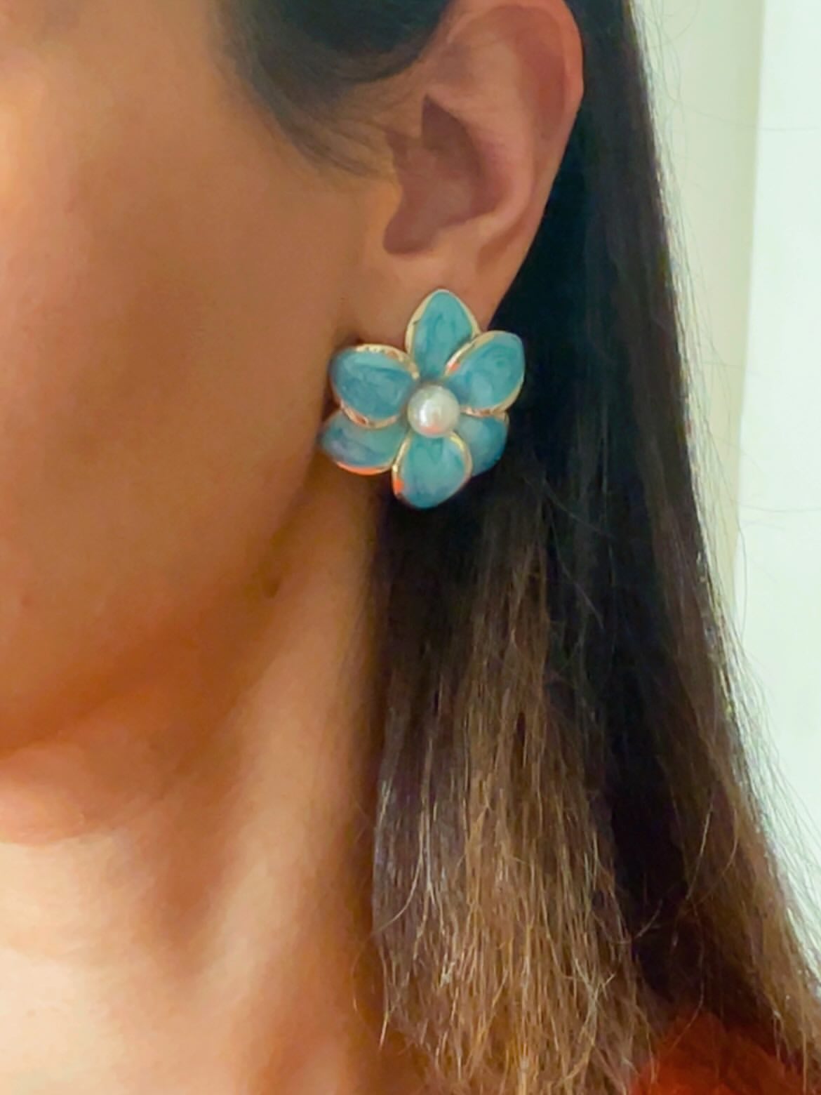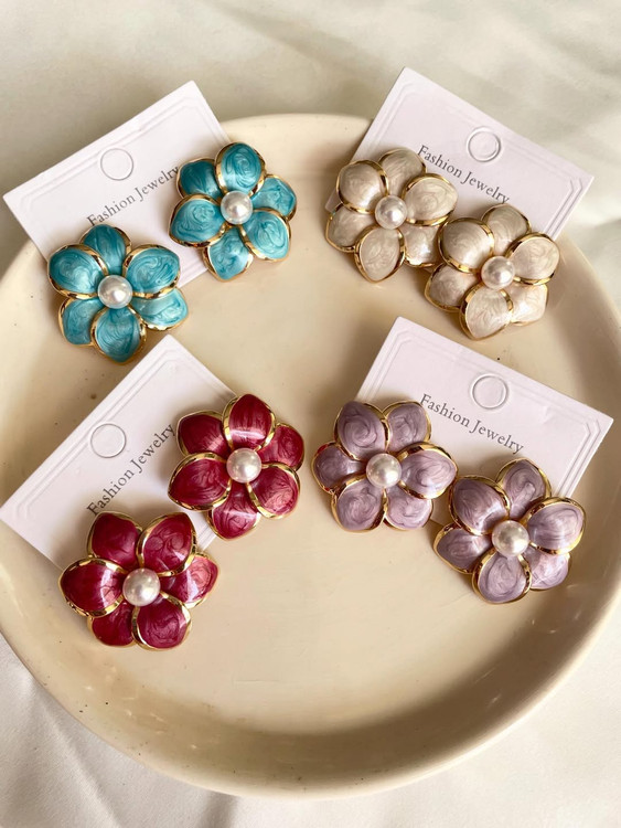 گوشواره با طراحی منحصر به فرد گل میناکاری شده.